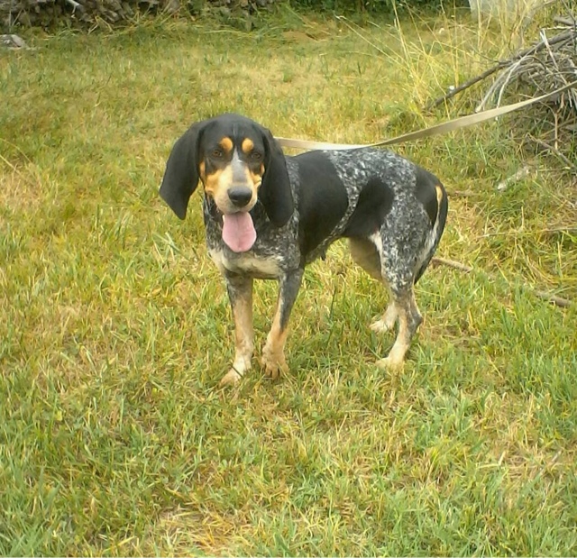 Lovely Fleurette is a bleue de Gasgone, possibly just a bit more than 2 years old. She gets on with male dogs but has no experience of females, or cats. She is going to need a lot of patience and love but will flourish given the care.